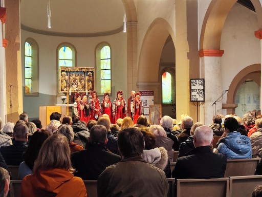 Mit einem Gottesdienst wurde in der gut gefüllten Eisenacher Nikolaikirche des 4.Jahrestags des russischen Überfalls auf die Ukraine gedacht. Die Sehnsucht nach und Bitte um Frieden, die Bewunderung des Mutes der Ukrainerinnen und Ukrainer, sowie die Dankbarkeit für die erlebte Unterstützung hier in Deutschland wurden zum Ausdruck gebracht. Das Versöhnungsgebet von Coventry, auch Nagelkreuzgebet genannt, wurde auf deutsch und ukrainisch gebetet. Musikalisch umrahmt wurde der Gottesdienst von besinnlicher Klaviermusik und ukrainischen Liedern, vorgetragen vom Chor Rasom. Mit einer Schweigeminute am Ärztedenkmal endete die Veranstaltung.